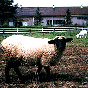 (山羊と羊) 山羊の眼は黄色地に四角い瞳、顔の両端についているのでちょっと変わっている。2頭ともメスの子供で名前はついていない。最初、名前を付けてみたけれど、いつも鳴きまねで「メエー」とばかり呼んでいるので、結局名前は必要がなくなった。ときおり羊が激しく鳴くことがあって、駆け寄ってみるとたいていは山羊が柵から飛び出したために、さびしくなった羊が相棒を呼んでいるのだ。 |