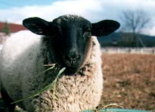 どちらも似たようなもんだろうと思うと、これが大間違い。両目が顔の端ギリギリのところにあり、頭がほとんどそのままあごになっていて、下あごに歯があるだけで上あごは歯ぐきだけ、というのは同じなんだけど、ずいぶん違ったところがある。羊は寂しがりやで、外の見えない所に山羊をつないでひとりぼっちにしておくと、「メー、メー」とよく鳴く。可愛らしい「メー |
