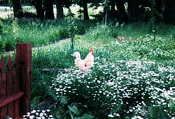 暑さとともに雑草がぐんぐん伸びてくる。とっても刈っても、あとからあとから生えてくる。一度きれいに採ったつもりでも、2週間もすると元のもくあみだ。 ガーデン内の草むしりをしていると、掘り起こした後を追いかけるようにしてニワトリたちがつつきまわす。掘り返えされた土の中から虫たちをついばんでいるのだ。遠くからでも目ざとく見つけて必ず寄ってくる。