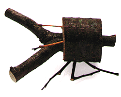 ![]() 足は小枝をカットして作ります。 材料の木は落ちているものを使いましょう。 |