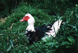 この春から夏にかけて、昼間放し飼いのニワトリたちは随分とキツネの餌食となってしまった。人がいないスキをみてはやってくるようだ。そんな中、フランスガモは池の深いヨシの茂みに逃げこんで、無事である。