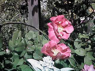 とても丈夫なつるバラである。半一重で多花性四季咲き。ティ系の強い香りがする。 秋に熟した大きな実を取り蒔きしたら、正月頃から芽がボツボツと出始め2年後には性質の 違う花が咲いた。その一つに妻の名前をつけかってに楽しんでいる。